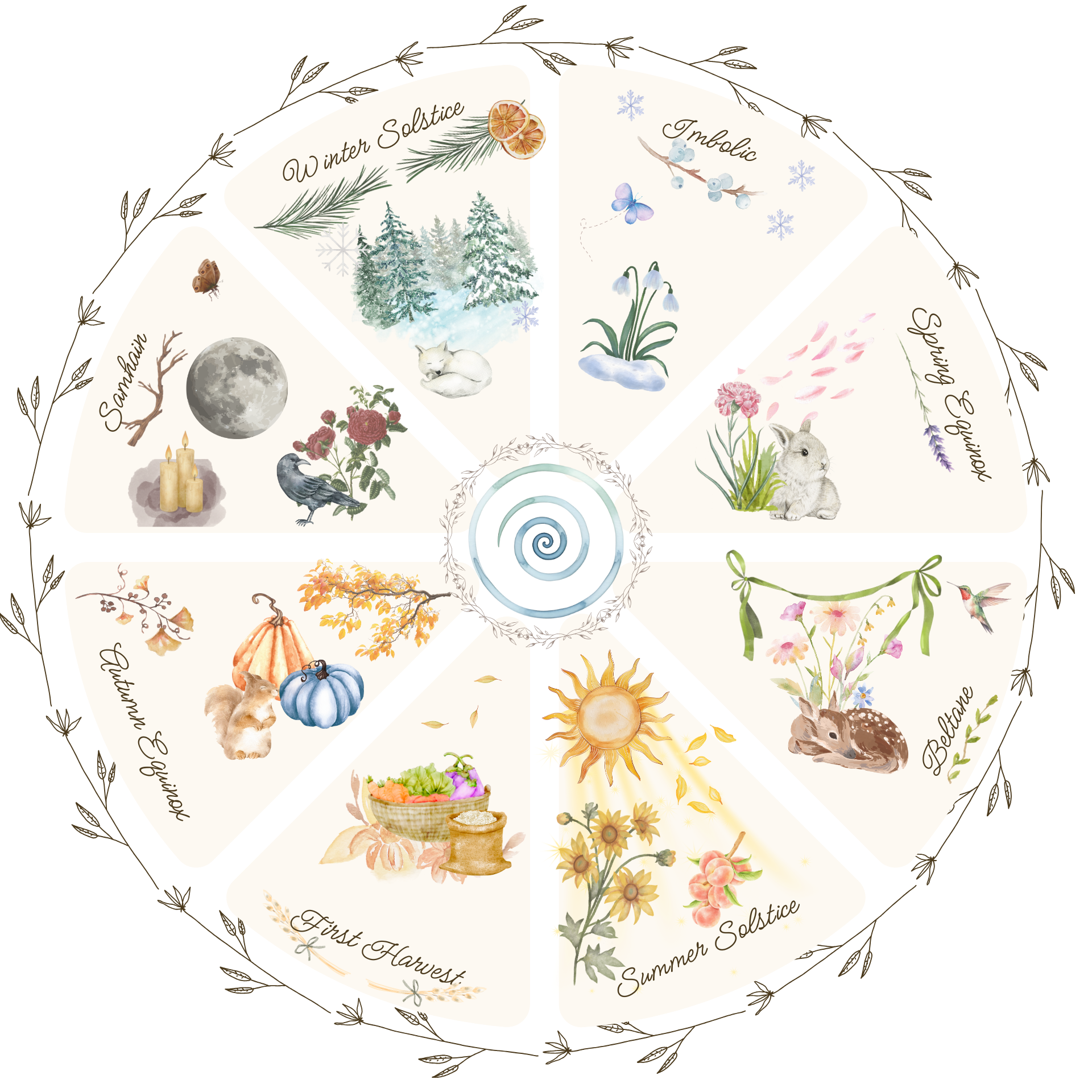 The Wheel of the Year is a gentle map of the seasons. A way to honor nature’s cycles and celebrate the turning points in our lives. Rooted in ancient traditions of cyclical living, it invites us to pause every six weeks for moments of reflection, renewal, and connection.